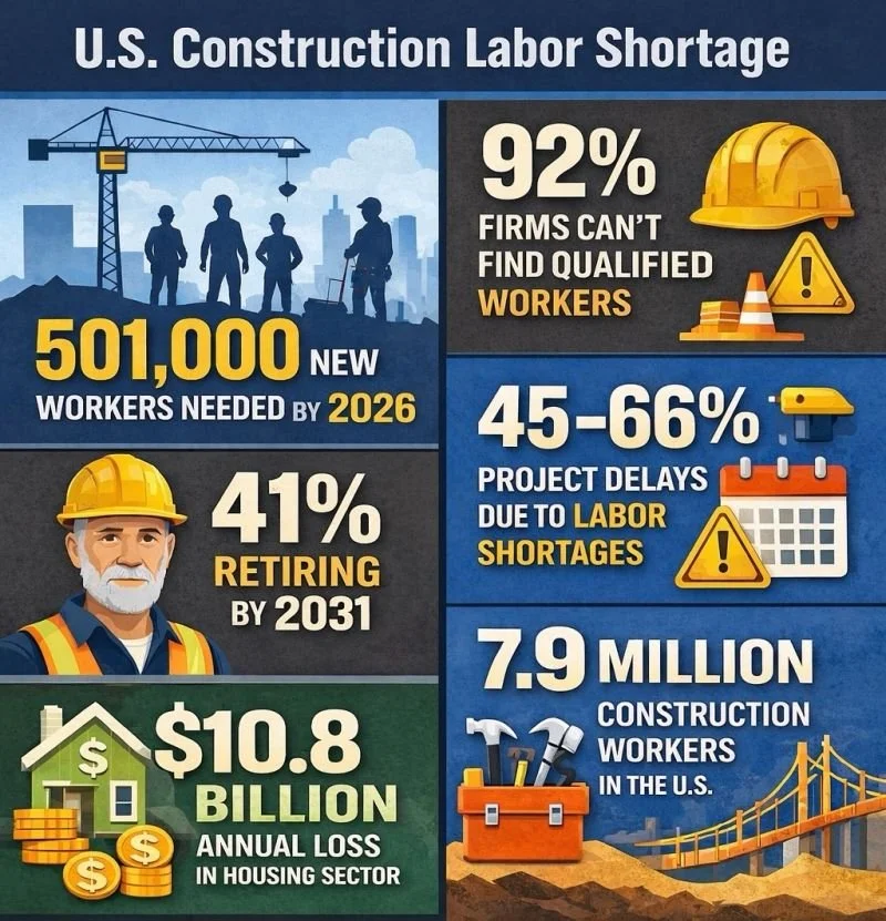 Most firms can’t find qualified workers. Jobs get delayed not because of materials or permits, but because the people simply aren’t there. And with a huge chunk of the workforce set to retire over the next decade, this isn’t a short-term hiccup.